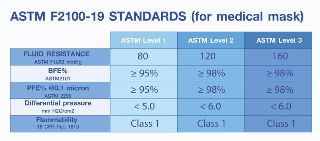 มาตรฐานหน้ากากทางการแพทย์ ของ ASTM อเมริกา ( ASTMF2100-2019 standard)