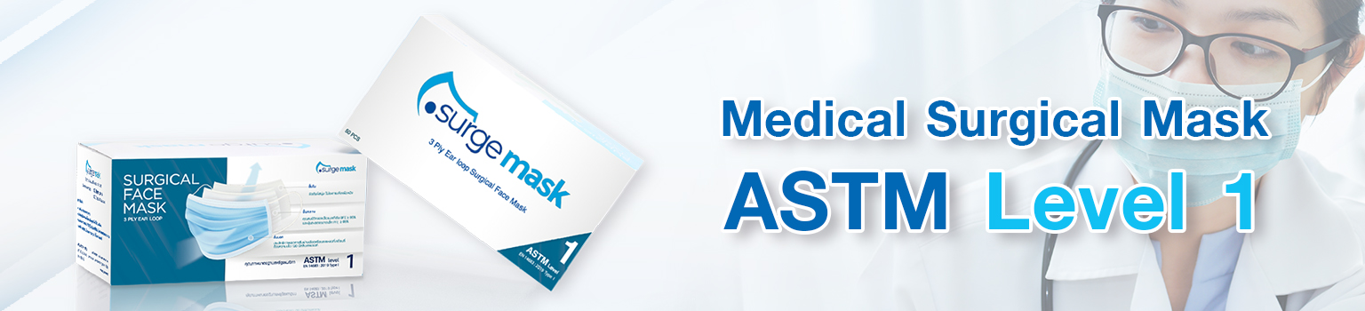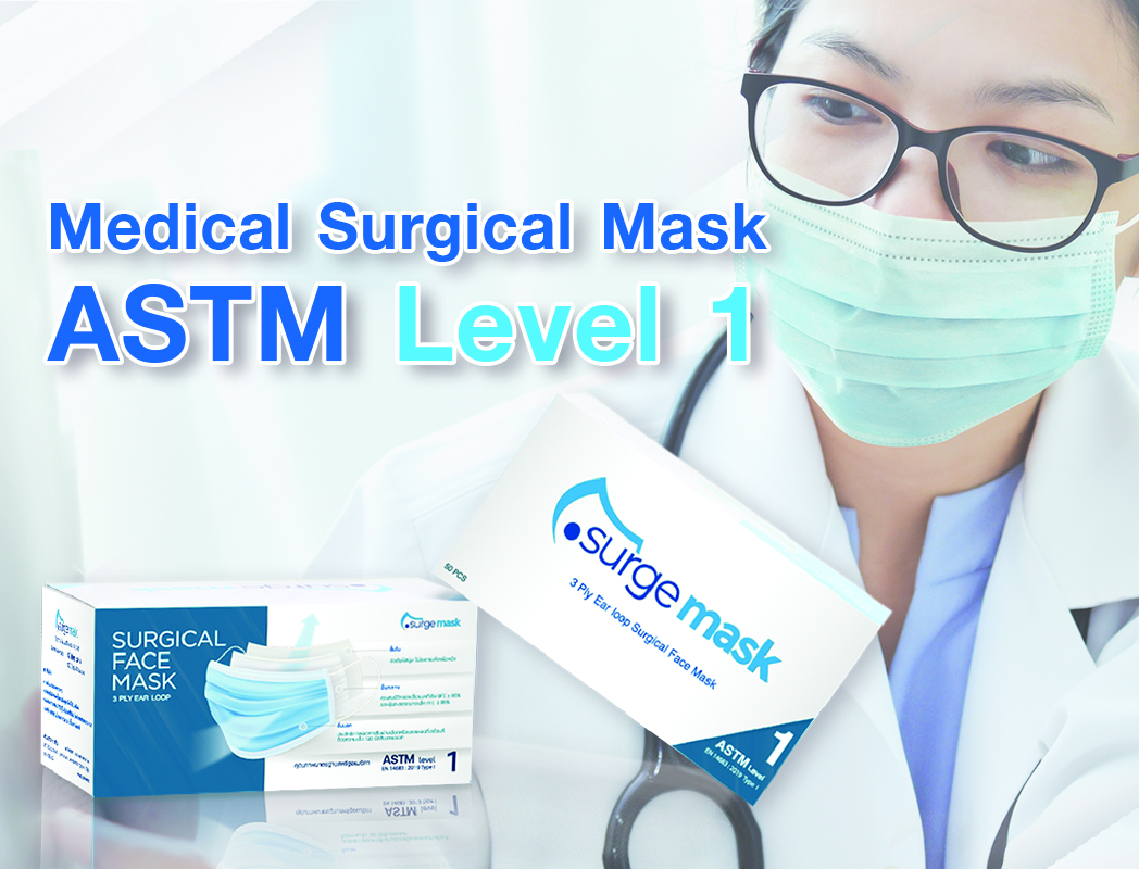 Surgemask® ASTM Level 1 เป็นหน้ากากอนามัยมีแผ่นกรองสามชั้น คุณภาพสูง สำหรับศัลยแพทย์ สวมใส่สบายไม่รัดหู ไม่ระคายเคืองผิว มีให้เลือก 3 สี คือ