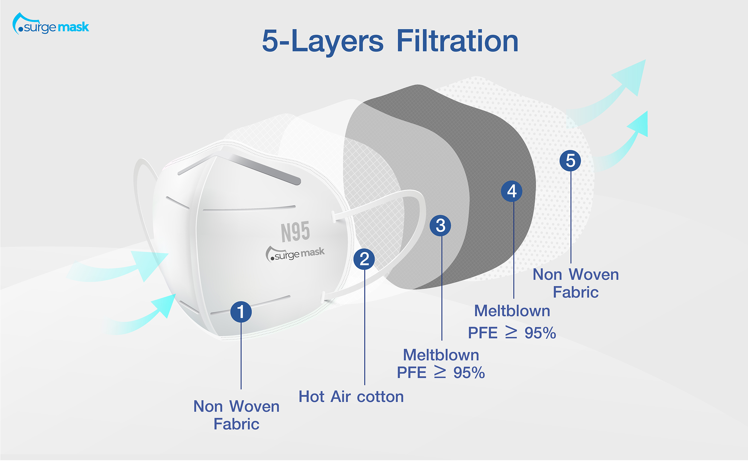 เนื่องจากการใส่ Surgical Mask จะไม่ค่อยแนบสนิทกับใบหน้าในขณะสวมใส่ทำให้มีอากาศบางส่วนผ่านเข้ามาโดยไม่ผ่านการกรอง มีความเสี่ยงที่จะการติดเชื้อได้ การป้องกันทางเดินหายใจจากอากาศภายนอกหน้ากากจึงเป็นสิ่งจำเป็น หน้ากากประเภท N95 จะมีประสิทธิภาพในการกรองดีกว่าและขณะสวมใส่หน้ากากจะแนบสนิทกับใบหน้า ทำให้อากาศที่ผ่านจากภายนอกเข้ามา ผ่านการกรองทั้งหมด จึงทำให้มีประสิทธิภาพในการกรองมากกว่า Surgical Mask